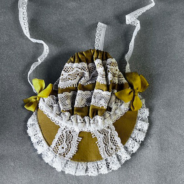 • Gold lace bonnet.