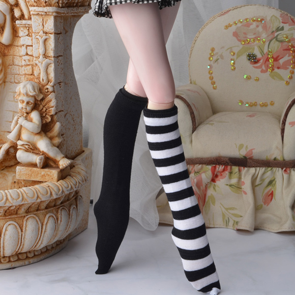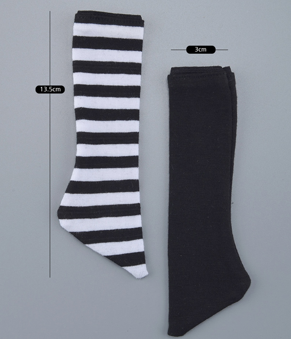 Odd Knee Socks for Kid and MSD. Comes with one black/white stripe sock and one solid black sock.